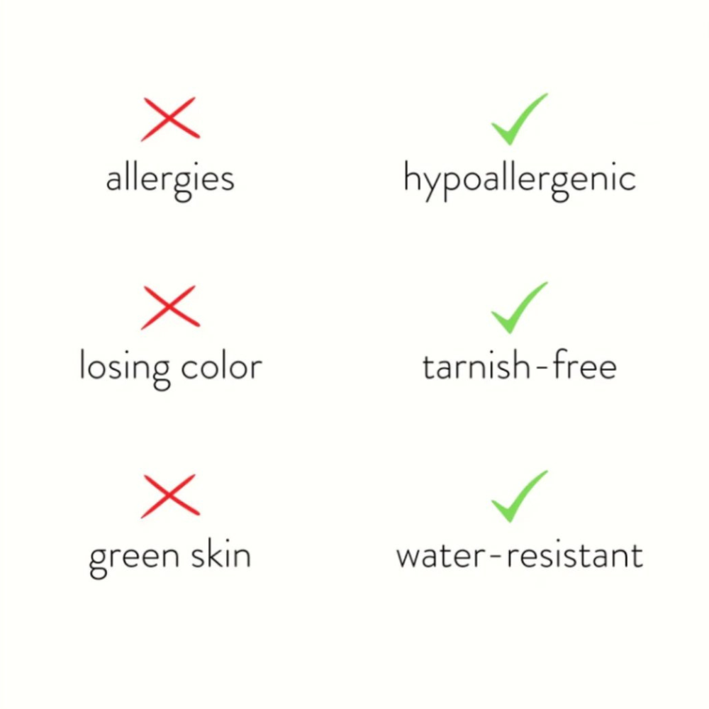 Sans jamais sacrifier la qualité, nous avons allié tradition et modernité : acier inoxydable, plaqué or durable, et pierres de zirconia étincelantes.